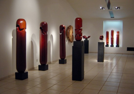 …….Vi nos espaços que vazam de lado a lado e onde não está a madeira o contraponto às formas materializadas. Aqueles valem tanto quanto estas, pois, ao fugir do esperado, delas fazem parte e lá permanecem para serem vistos…..